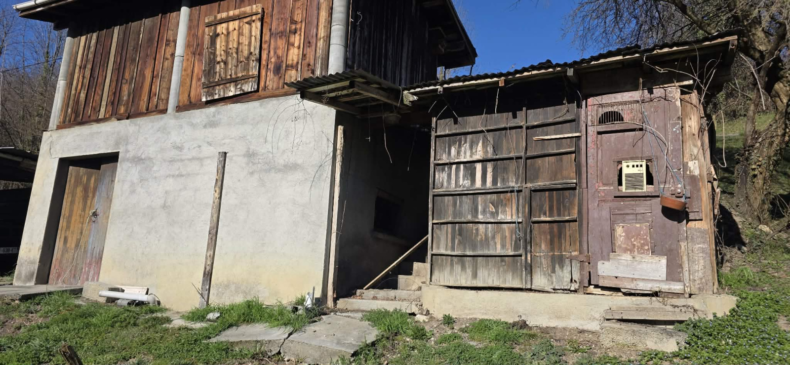 Une dépendance en bois complète l’ensemble, idéale pour un artisan, un atelier ou du stockage.