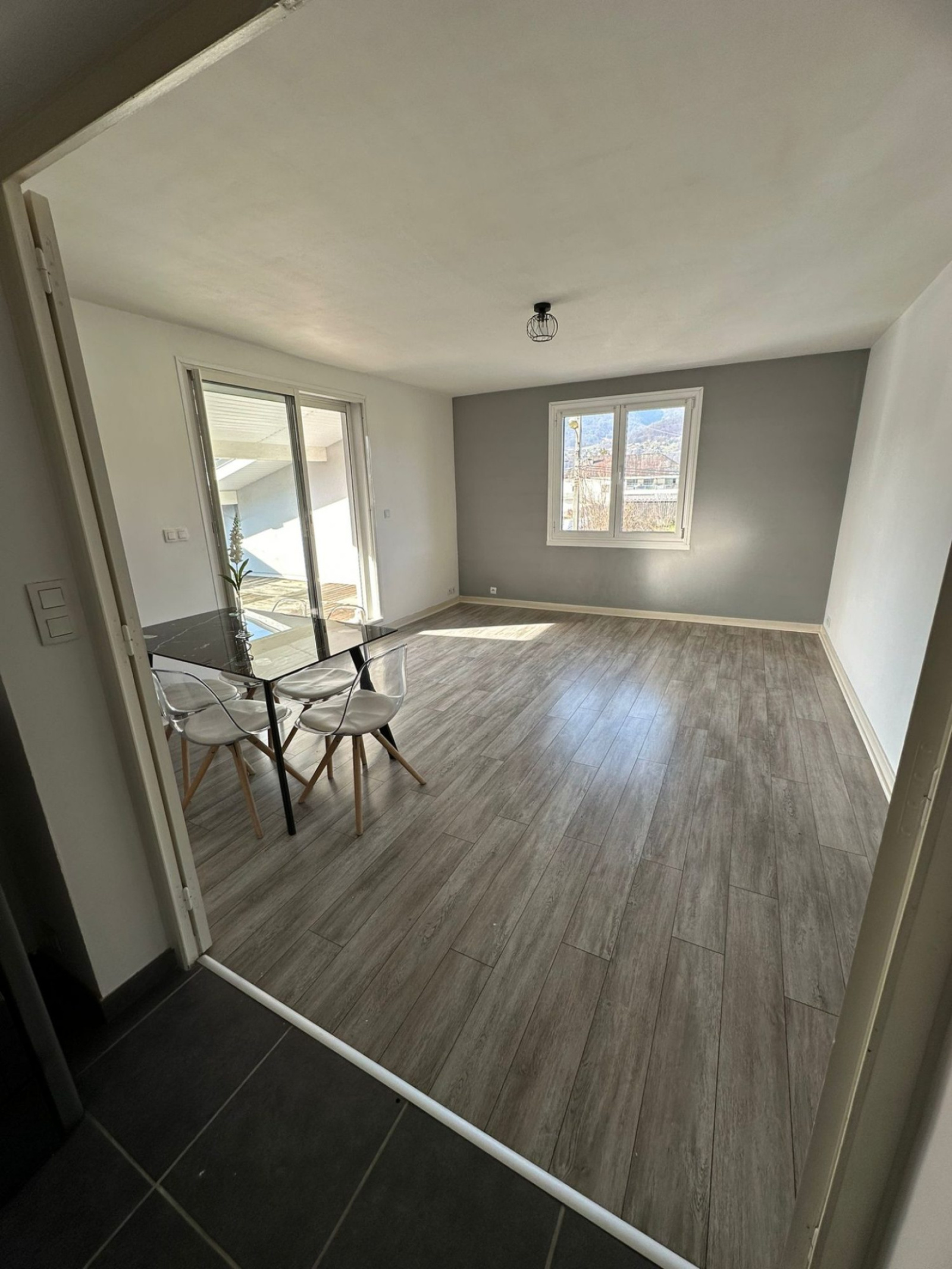 TYPE 3 ET COMBLE À AMENAGER Dans une maison composée de trois appartements, venez découvrir ce joli appartement de type 3 de 72m2. Au premier et dernier étage, il se compose d'une entrée suivie de la pièce de vie principale donnant sur une grande terrasse d'où vous pourrez admirer la jolie vue sur les montagnes. L'appartement est également composé d'une cuisine équipée récente séparée de la pièce de vie, d'une salle d'eau avec WC et de deux belles chambres. De plus, il y a la possibilité d'aménager des combles d'environ 35m2. L'appartement est chauffé à l'aide d'un poêle à granulés. Il est actuellement loué avec un bail meublé de 800€/mois (02/03/2024 - 02/03/2025). N'hésitez pas à me contacter pour plus de renseignements. Les honoraires sont à la charge du vendeur.
